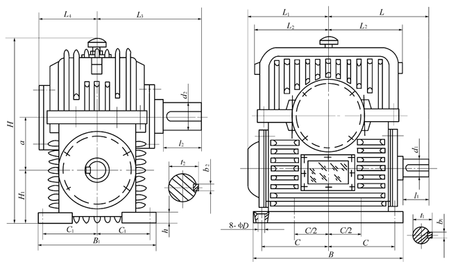 PWU80-PWU355型二次包絡(luò)環(huán)面蝸桿減速器,主要尺寸: