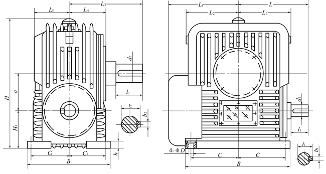 | a | H1 | B | B1 | C | C1 | D | H | L | L1 | L2 | L3 | L4 | d1 | b1 | t1 | l1 | d2 | b2 | t2 | l2 | h |